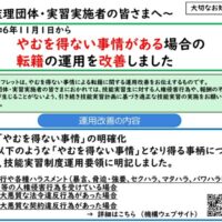 常に問題やトラブルが起こって運用変更や厳格化が起こる感じのある外国人技能実習制度ですが、2024年11月1日からやむを得ない事情がある場合の転籍(以下「やむ転」と省略)の運用が変更されましたので今回はその経緯と背景につい …